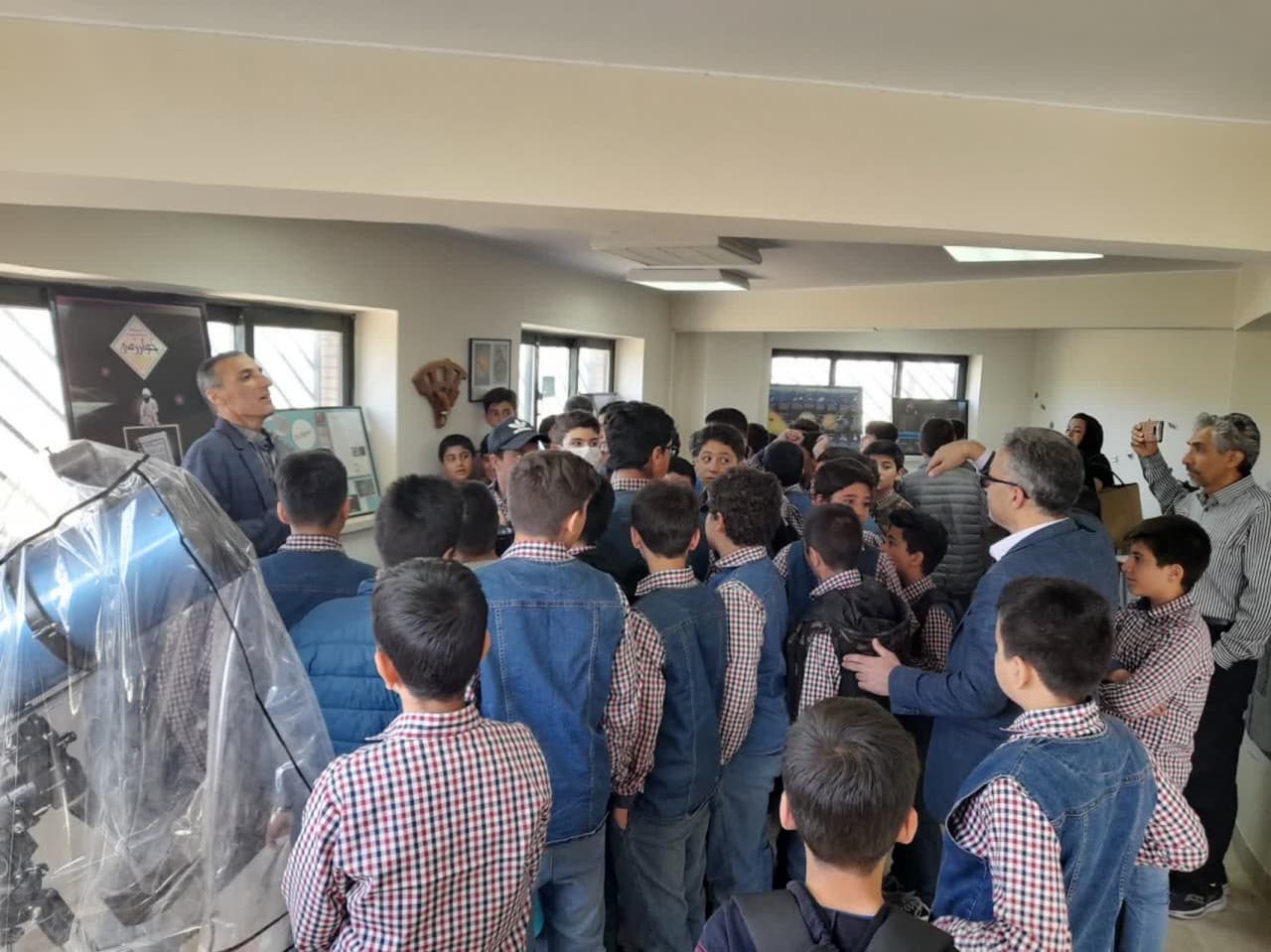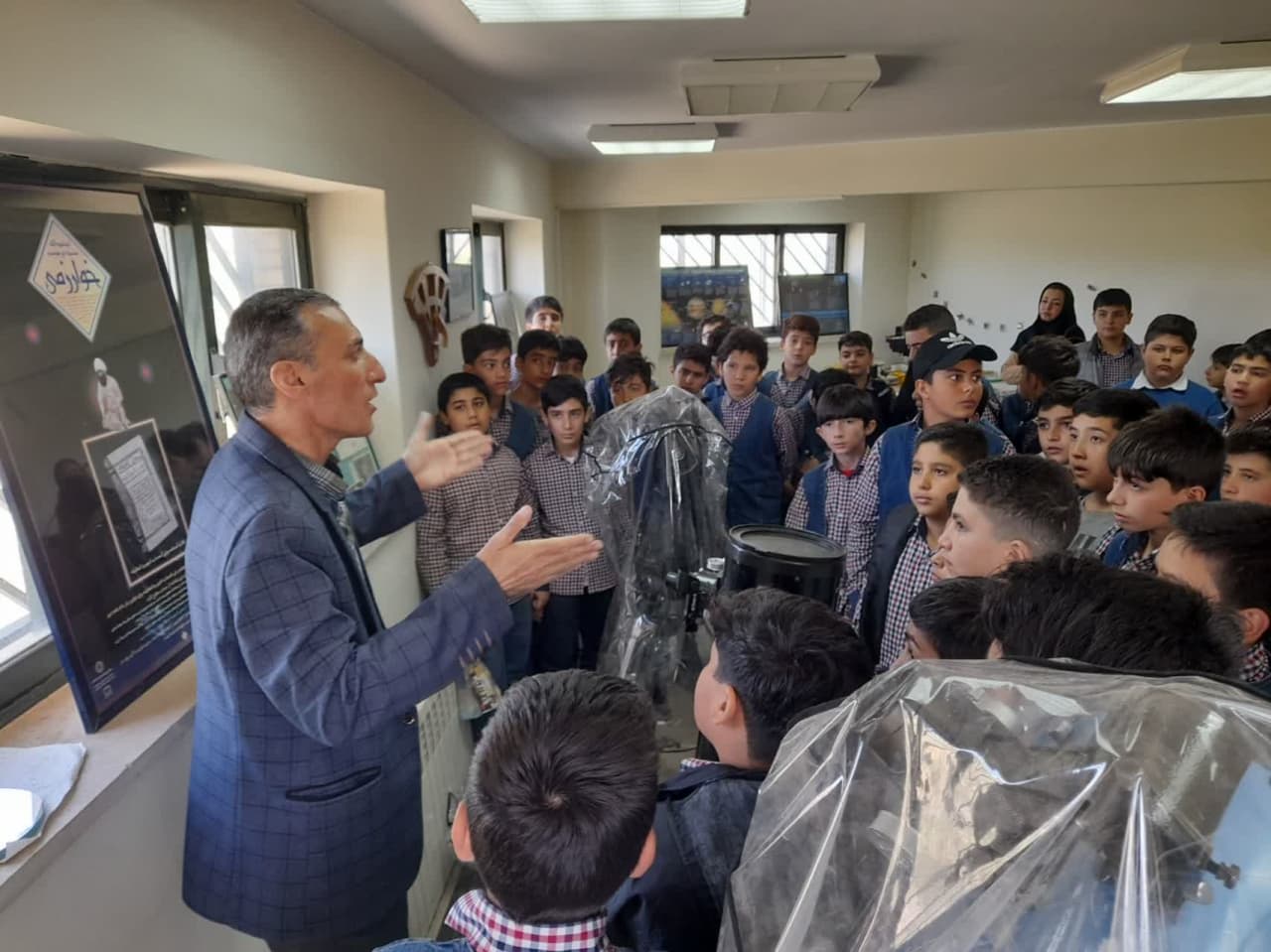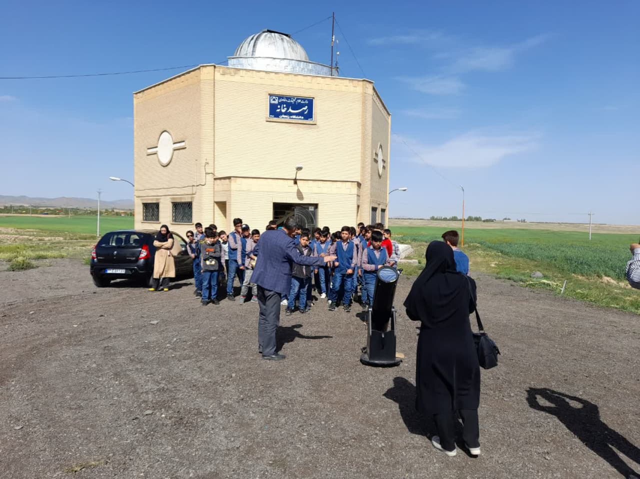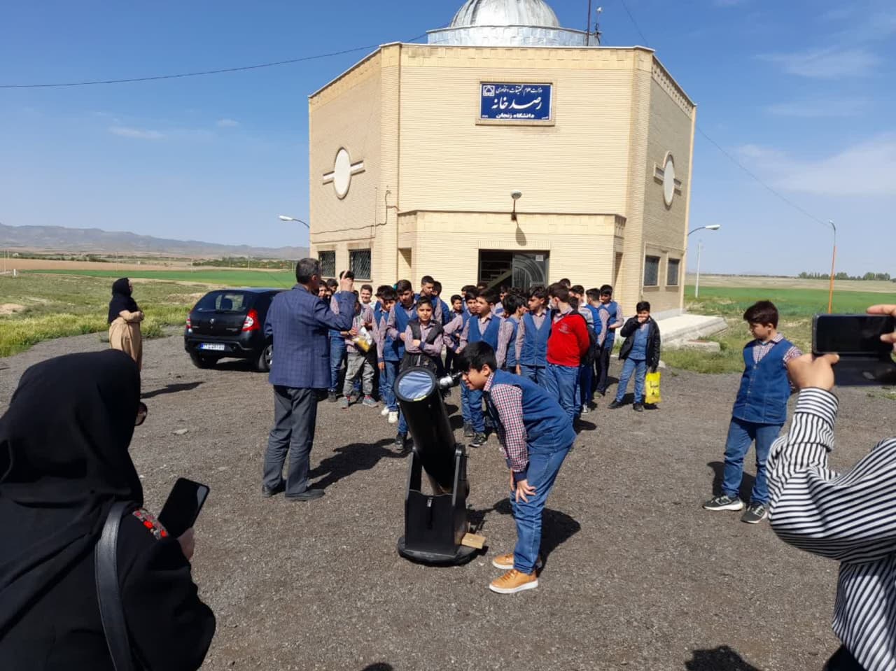 پیرو هماهنگی های قبلی جناب آقای دکتر مرصعی با روابط عمومی دانشگاه زنجان در تاریخ 17 اردیبهشت ماه 1402 تعداد 51 نفر از دانش آموزان مقطع ششم ابتدایی دبستان پسرانه علامه حلی زنجان از رصدخانه دانشگاه بازدید و با تلسکوپ 8 اینچ به رصد خورشید پرداختند: