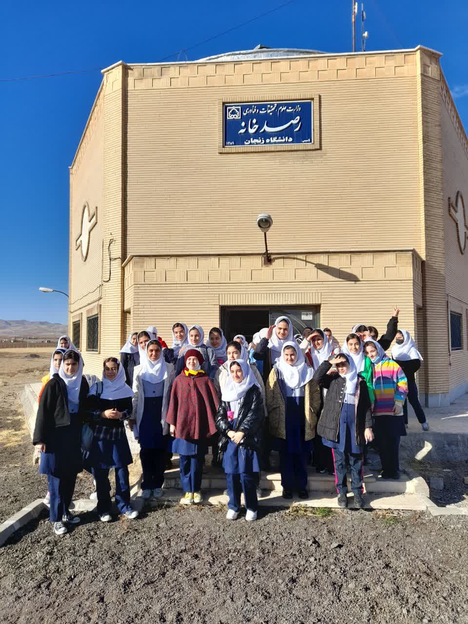 در تاریخ 5 آذر ماه 1402 تعداد 60 نفر از دانش آموزان دبستان دخترانه هاجر زنجان پیرو هماهنگی روابط عمومی دانشگاه از رصدخانه دانشگاه زنجان بازدید و با تلسکوپ 8 اینچ به رصد خورشید پرداختند.