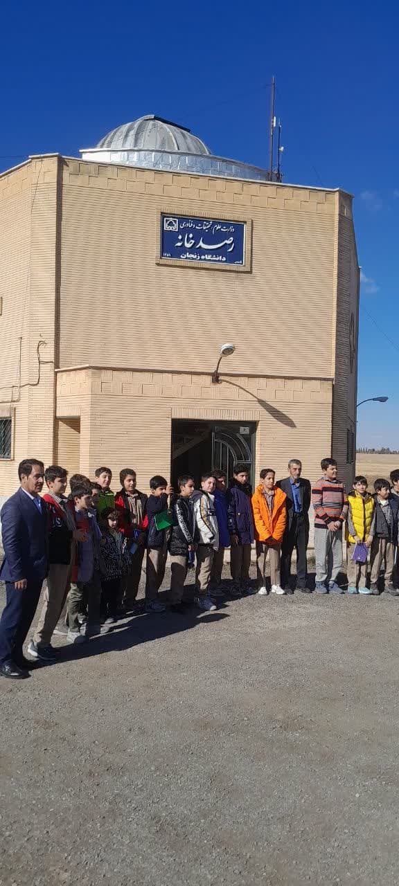 پس از هماهنگیهای کتبی با روابط عمومی دانشگاه تعداد 65 نفراز دانش آموزان مقاطع پنجم و ششم ابتدایی دبستان غیر انتفاعی بهارستان زنجان طی دو مرحله در تاریخهای 6 و 7 آبان ماه سالجاری از رصدخانه و موزه دانشگاه بازدید کردند. این بازدید با توضیحات کامل کارشناس رصدخانه در آمفی تاتر رصدخانه و بازدید از تلسکوپ اصلی و گنبد رصدخانه و همچنین رصد لکه های خورشیدی با تلسکوپ 8 اینچ همراه بود.