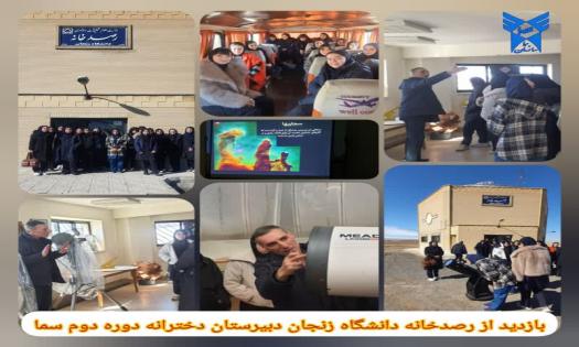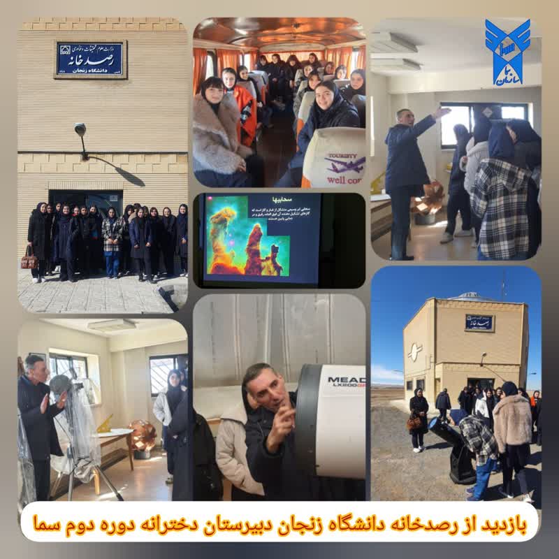 پیرو هماهنگی کتبی قبلی با روابط عمومی دانشگاه زنجان تعداد 20 نفر از دانش آموزان دبیرستان دوره دوم دخترانه سما زنجان در مورخ 28 بهمن ماه 1403 (شنبه) از رصدخانه و موزه دانشگاه و دانشکده علوم انسانی بازدید نمودند.